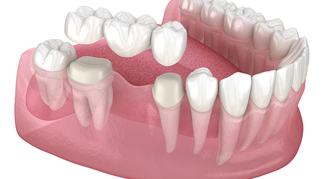 A bridge is a fixed dental restoration, meaning it is non-removable. The dental bridge is anchored in place through the use of two dental crowns, which are custom made to fit your smile and are placed on the teeth or dental implants next to the space left by the missing tooth. These crowns hold the artificial tooth in place to restore your smile, ensuring that your restoration will not easily shift or come loose. It typically requires only two visits to our practice to complete the dental bridge. Dental bridges are designed to last for many years and to restore the function, beauty, and health of your smile.